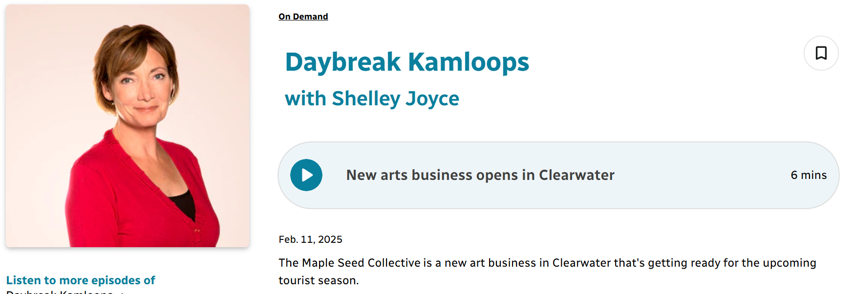 The Maple Seed is proud to partner with guest artists to provide art classes with a variety of mediums to the North Thompson Valley! We also have art sold by artists that call Clearwater their home!