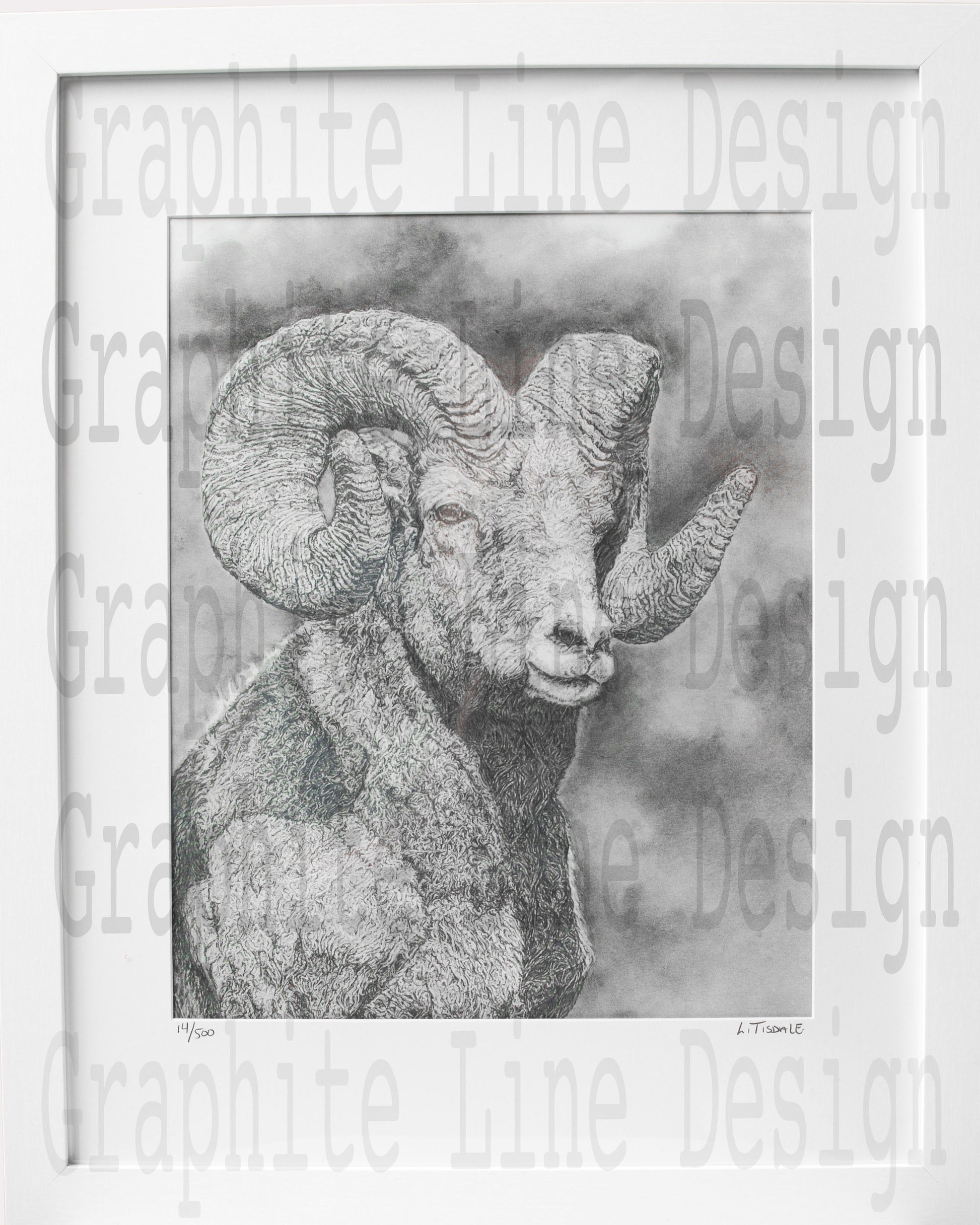 Bighorn Sheep Framed Print by Laura Tisdale - Graphite Line Design