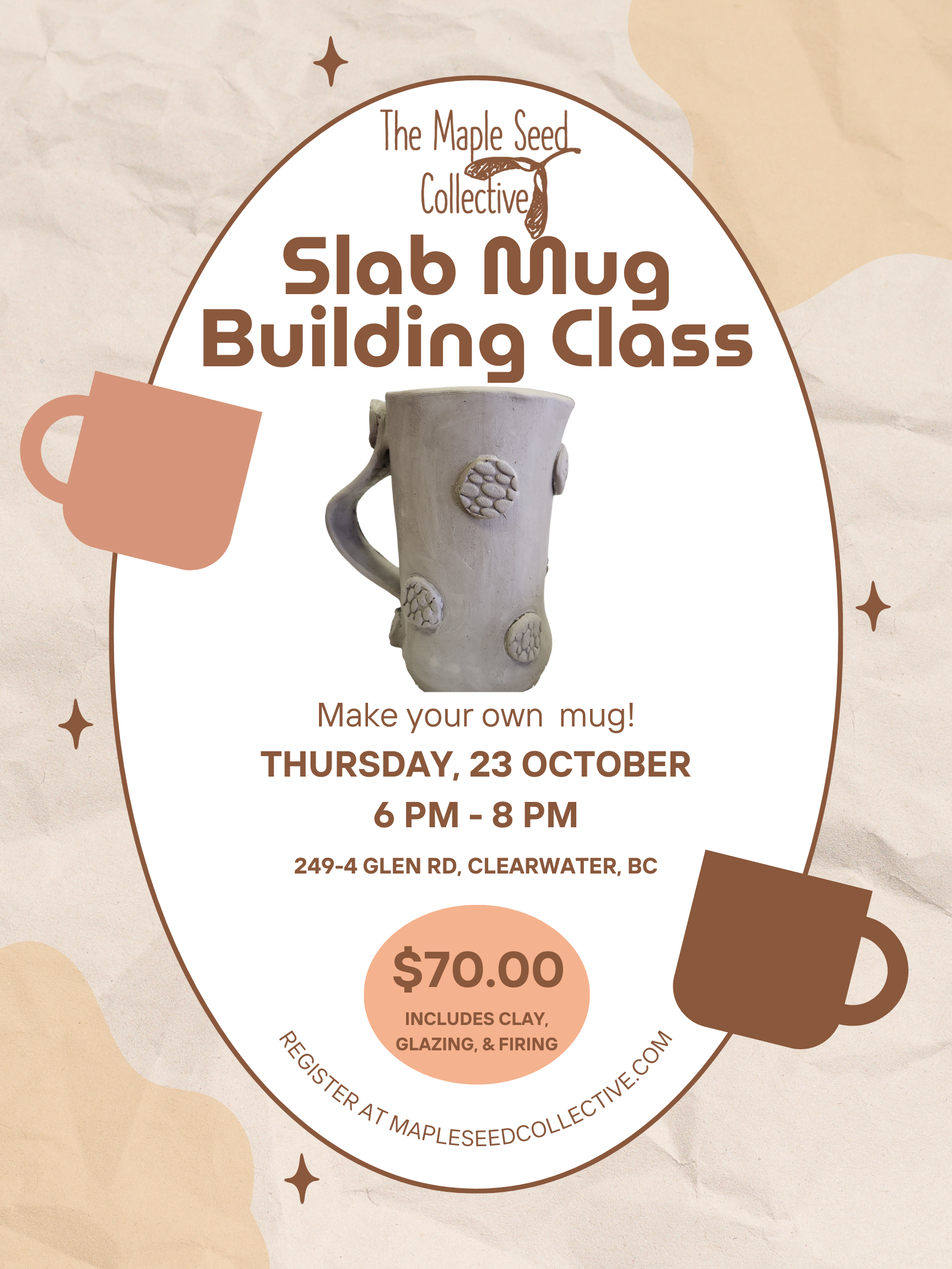 This is a great class for all abilities to follow along how to build a functional handmade mug with a rolled slab of clay!