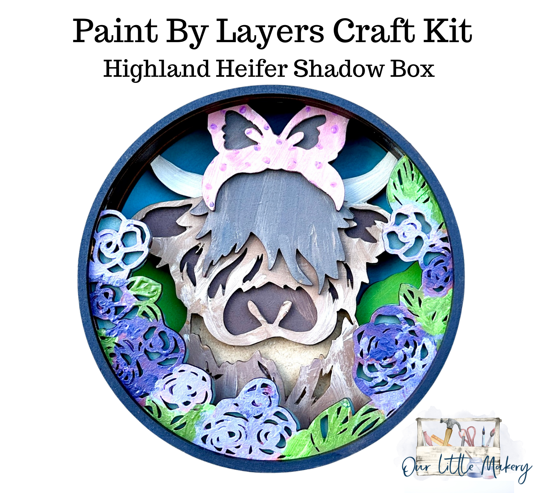 Highland Heifer Shadow Box (DIY Acrylic Painting Kit) by Our Little Makery