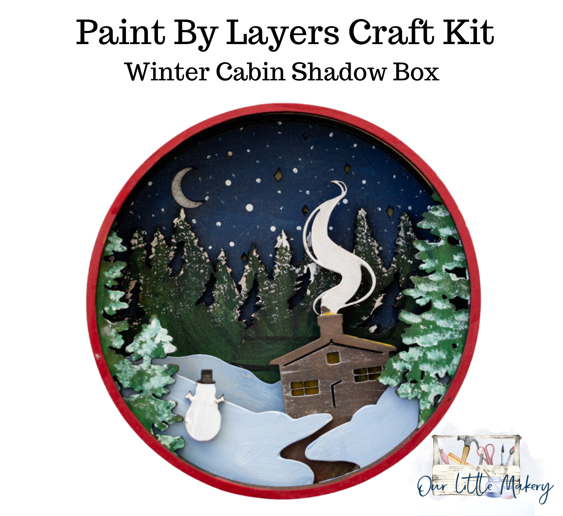 Winter Cabin Shadow Box (DIY Acrylic Painting Kit) by Our Little Makery